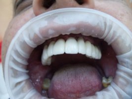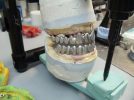 | Modello con i coping da impronta (Ankylos) | Monconi inseriti su impianti (Bredent) | Il base in metallo per il ponte metallo-ceramica |